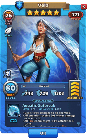 Empires And Puzzles Vela Talent Grid - Vela does not fit into the tank position too well because she has relatively less tanky stats.